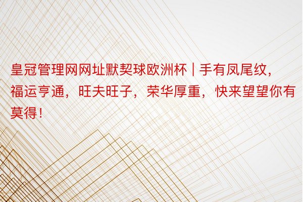 银河娱乐app白色的在繁多手纹特征中,“凤尾纹”被视为一种祥瑞之兆,它代表着福运亨通、旺夫旺子、荣华厚重。若是你也领有这么的手纹老皇冠登录welcome,那么恭喜你,你将会领有一个好意思好的东谈主生。接下来,让咱们沿途洽商一下“凤尾纹”的特征以及它所带来的好运势。